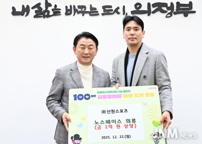제이앤엠뉴스 | 의정부시는 12월 22일 ㈜신원스포츠 노스페이스 양주점(LF스퀘어몰)과 포천송우점이 관내 아동복지시설에 아동용 의류 및 가방 등 1억 원 상당의 물품을 기부했다고 밝혔다.