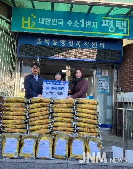 제이앤엠뉴스 | 송탄한마음교회는 최근 크리스마스를 맞아 어려운 이웃들에게 따뜻한 마음을 전하기 위해 쌀 10㎏ 50포(총 500㎏)를 평택시 송북동 행정복지센터에 전달했다.