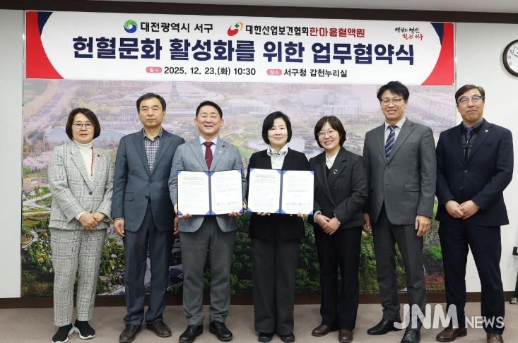 제이앤엠뉴스 | 대전 서구는 23일 대한산업보건협회 한마음혈액원과 지역사회 헌혈 문화 확산과 이웃사랑 실천 분위기 조성을 위한 업무협약을 체결했다.