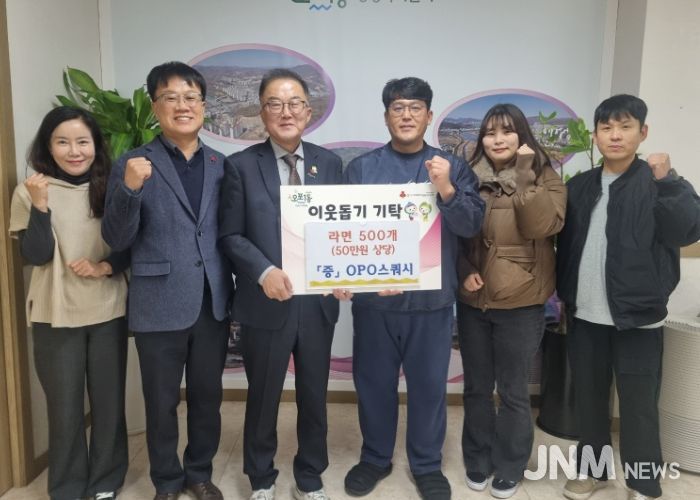 제이앤엠뉴스 | OPO스쿼시 강인석 대표는 23일 어려운 이웃에게 전달해 달라며 광주시 오포1동에 라면 500개(50만 원 상당)를 기탁했다.