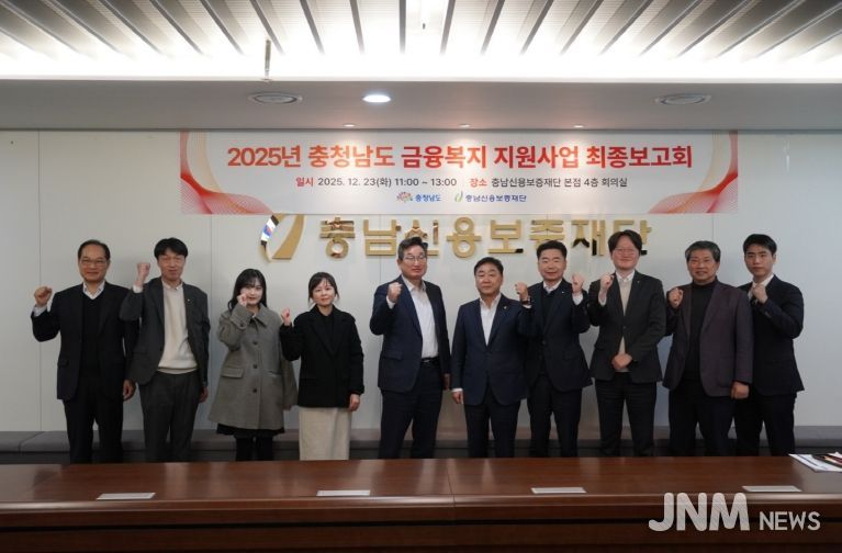 제이앤엠뉴스 | 충남신용보증재단은 지난 12월 23일 충남신보 본점 회의실에서 '2025년 충청남도 금융복지 지원사업 최종보고회'를 개최하고 올해 사업 추진 성과를 공유하는 한편, 차년도 사업 추진 방향을 논의하는 자리를 마련했다고 밝혔다.