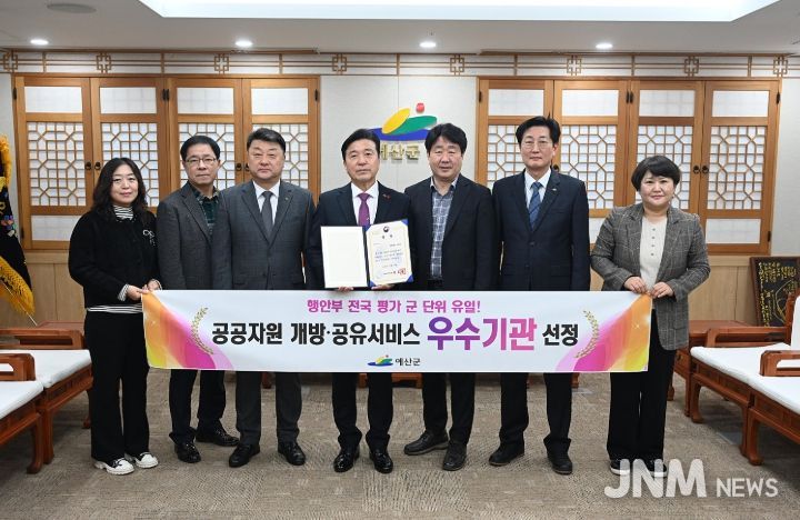 제이앤엠뉴스 | 예산군은 행정안전부가 주관한 ‘2025년 공공자원 개방·공유서비스 실적평가’에서 우수 지자체로 선정돼 행정안전부 장관상을 수상했다고 밝혔다.