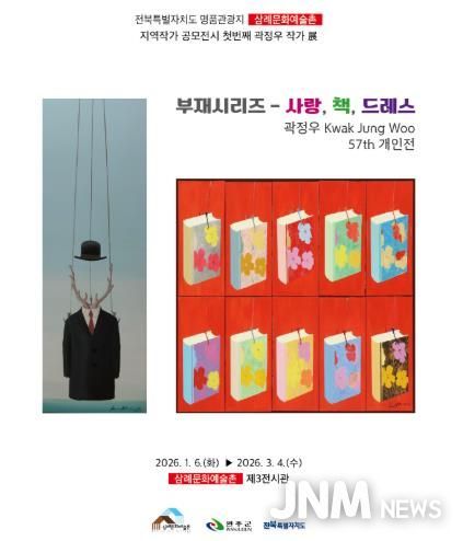 제이앤엠뉴스 | 완주군이 전북특별자치도 명품 관광지인 삼례문화예술촌에서 지역작가 공모전으로 곽정우 작가의 ‘부재시리즈 – 사랑, 책, 드레스’ 전시를 시작했다.