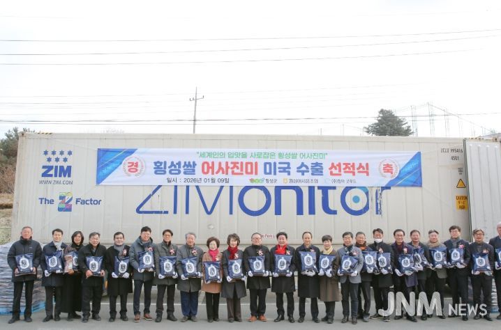 제이앤엠뉴스 | 횡성군 농산물 공동브랜드 쌀인 ‘어사진미’가 미국 동부 시장 공략을 위해 2026년 첫 수출 선적길에 올랐다.