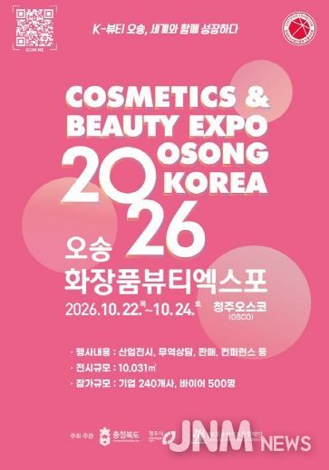 제이앤엠뉴스 | 충북도와 청주시는 1월 14일부터 화장품·뷰티산업의 트렌드를 선도하고, 국내 화장품 기업의 판로 개척을 지원하는 ‘2026 오송화장품뷰티엑스포’의 참가기업 및 공식후원사 모집을 시작한다.