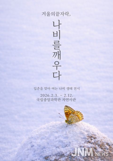 제이앤엠뉴스 | 미래의 꿈을 만드는 과학기술 문화 이음터(플랫폼) 과학기술정보통신부 국립중앙과학관은 입춘을 맞아 겨울과 봄의 경계에서 자연의 변화를 살펴보는 나비 생태 전시 코너 '겨울의 끝자락, 나비를 깨우다'를 2026년 2월 3일부터 2월 12일까지 10일 동안 운영한다고 밝혔다.