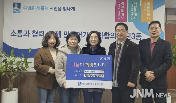 제이앤엠뉴스 | 수원시 영통구 매탄3동은 지난 3일 매탄3동 단체장협의회가 다가오는 설 명절을 맞아 관내 어려운 이웃들을 위해 누리상품권 300장(총 300만원 상당)을 기부했다고 밝혔다.