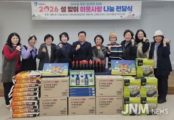 제이앤엠뉴스 | 영통구 영통1동은 지난 3일 영통1동 단체장협의회가 설 명절을 앞두고 관내 저소득 이웃을 위한 ‘설 맞이 이웃사랑 나눔 전달식’을 진행했다고 밝혔다.