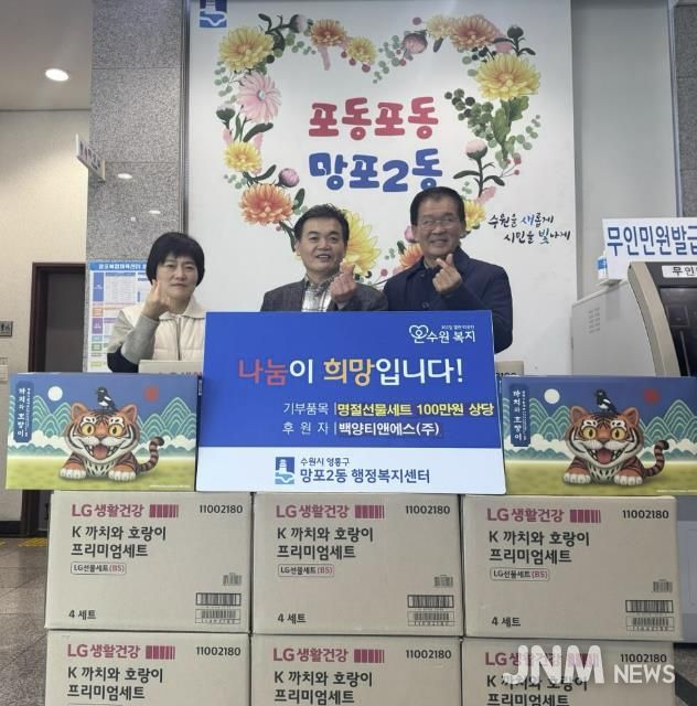 이용태 망포2동장은 “명절을 앞두고 소외감을 느끼기 쉬운 이웃들을 위해 따뜻한 나눔을 실천해 주신 백양티앤에스(주)에 깊이 감사드린다”며 “기탁해 주신 물품은 도움이 필요한 이웃들에게 소중히 전달하겠다”고 전했다.