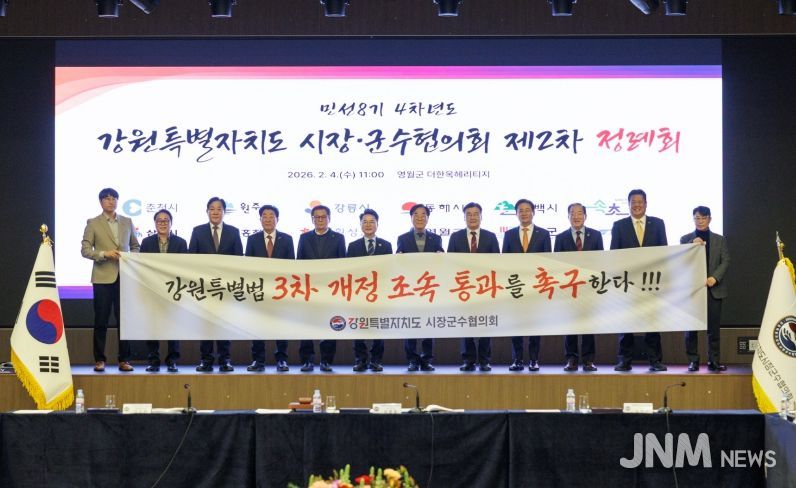 제이앤엠뉴스 | 강원특별자치도시장군수협의회는 2026년 2월 4일 오전 11시, 영월군 ‘더 한옥헤리티지 영빈관’에서 민선8기 4차년도 제2차 정례회를 개최하고 각 시·군의 주요 현안에 대하여 심의하고 대응책을 논의했다.