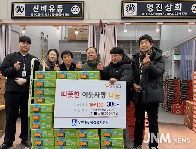 제이앤엠뉴스 | 수원 농수산물도매시장 내 신비유통‧영진상회에서 설 명절을 앞두고 우만동 이웃들에게 따뜻한 정을 전했다고 밝혔다.