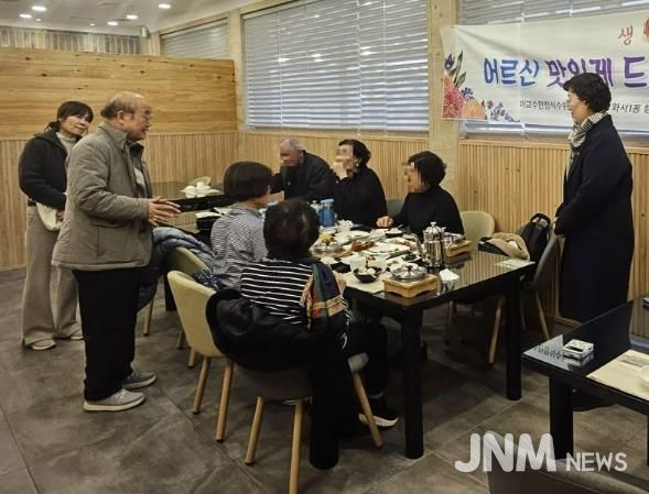 제이앤엠뉴스 | 수원시 팔달구 화서1동은 지난 4일, 2월 생일을 맞이한 독거어르신 7명을 모시고 이교수한정식에서 '어르신 사랑의 생신상' 행사를 진행했다.