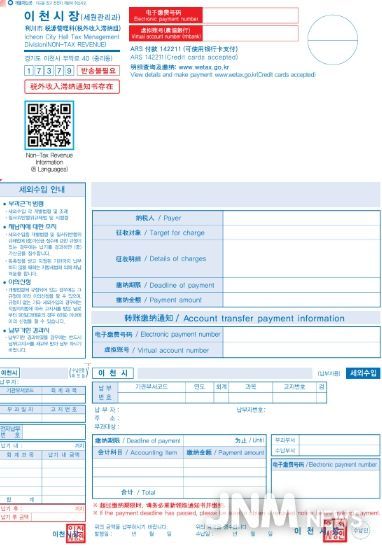 제이앤엠뉴스 | 이천시는 맞춤형 세무 행정 실현과 다문화 포용 정책 추진사업의 일환으로 경기도 최초 외국인 대상 다국어(영어·중국어·베트남어) 세외수입 체납고지서를 발송하고, 언어장벽으로 인한 세무 행정 사각지대 해소에 나선다고 밝혔다.