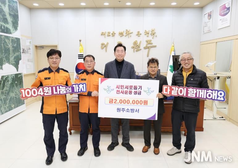 제이앤엠뉴스 | 원주소방서는 지난 5일 원주시청을 방문해 시민서로돕기 천사운동 후원금 200만 원을 전달했다.