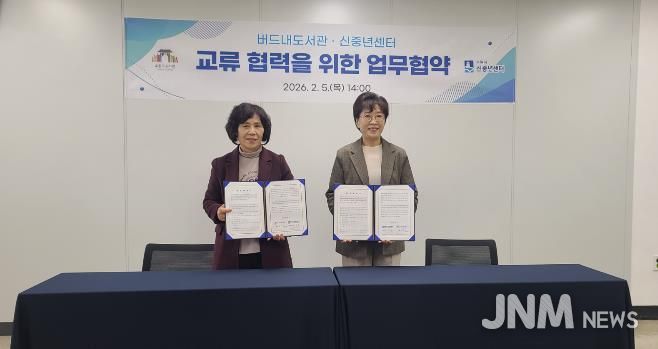 두 기관은 5일 버드내도서관에서 ‘신중년 맞춤형 라이프 솔루션 제공을 위한 업무협약’을 체결하고, 협력을 약속했다.