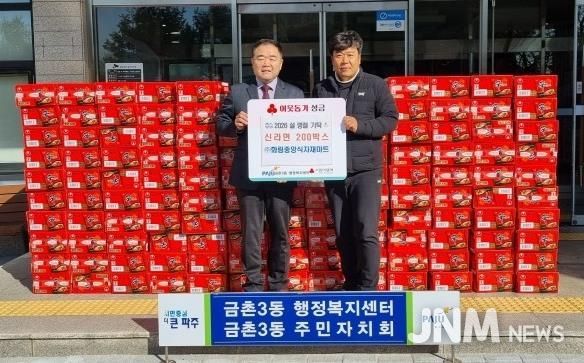제이앤엠뉴스 | 파주시 금촌3동은 ㈜화림중앙식자재마트 파주금촌역점으로부터 병오년 설 명절을 맞아 지난 3일, 라면(20개입) 200상자를 관내 취약계층과 노인 가구를 위해 기탁하며 따뜻한 나눔을 실천했다.