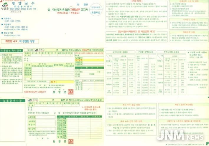 제이앤엠뉴스 | 청양군이 군민의 소중한 개인정보를 보호하고 고지서 가독성을 높이기 위해 상·하수도 요금 고지서를 기존 지로형에서 ‘봉합형’으로 전면 개편한다.