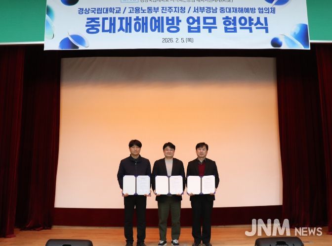 제이앤엠뉴스 | 경상국립대학교 라이즈(RISE) 사업단은 2월 5일 사천시 근로자종합복지관에서 서부경남 중대재해 예방 협의체 및 고용노동부 진주지청과 업무협약을 체결했다.
