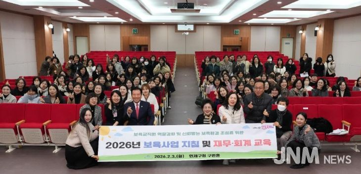 제이앤엠뉴스 | 연제구는 지난 2월 3일 연제구청 구민홀에서 관내 어린이집 원장 및 보육교사 120여 명을 대상으로 ‘2026년 보육사업 지침 개정사항 및 재무·회계 교육’을 실시했다.