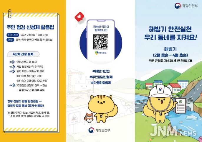 제이앤엠뉴스 | 이천시가 기온 상승으로 사고발생 위험이 높아지는 해빙기를 맞아, 시민들이 직접 생활 속 위험 요인을 찾아 점검을 요청하는 ‘해빙기 안전점검 주민점검신청제’를 시행한다고 밝혔다.