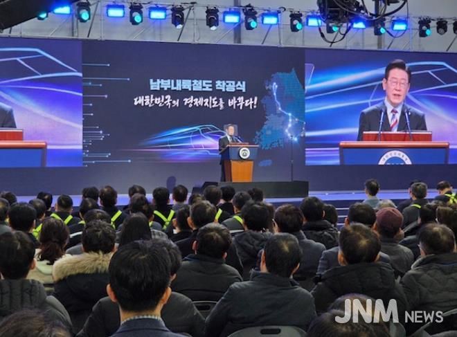 이날 착공식에 참석한 이재명 대통령은 기념사에서 “남부내륙철도는 단순히 선로 하나 놓는 사업이 아니다”라며, “수도권에 모든 것이 집중된 일극체제에서 벗어나 사람과 지역을 잇고 기회를 연결하며 지역의 성장동력을 만들어내는 국토대전환의 시작”이라고 강조했다.