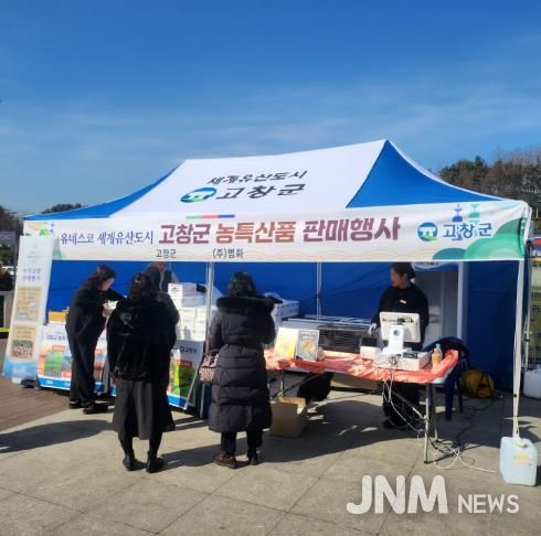 제이앤엠뉴스 | 고창군이 설 명절을 앞두고 중부고속도로 오창휴게소(하남방향)에서 지역농특산품 특별판매 행사를 연다.