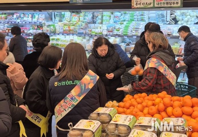 제이앤엠뉴스 | 한국여성농업인서귀포시연합회는 제주산 만감류의 우수성을 알리고 안정적인 소비처를 확보하기 위해 경기도 화성시 태안농협에서 7일 만감류 홍보·판촉 행사를 실시했다.