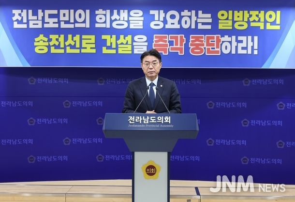 이날 도의원 일동은 성명서를 통해 “정부와 한국전력이 추진 중인 국가기간 전력망 확충 정책이 전남 지역에 과도한 부담을 초래하고 있다”고 지적하며, “전남도민의 생존권과 환경권을 침해할 우려가 있는 송전선로 건설 계획에 대해 전면적인 재검토와 에너지 정책의 방향 전환이 필요하다”는 입장을 밝혔다.