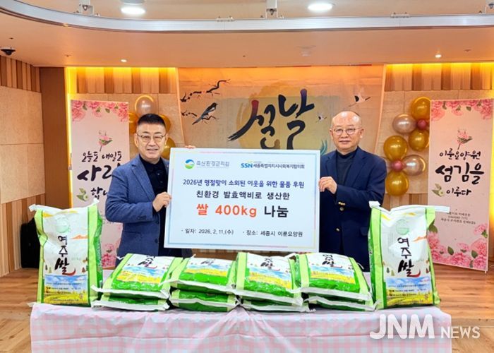 이날 협의회와 축산환경관리원은 세종시 이룬요양원(원장 손정아)을 직접 방문해 어르신들에게 새해 인사를 전하고 친환경 쌀 100kg을 전달했다. 이번 전달식은 사회복지시설의 운영 부담을 덜고, 어르신들의 안정적인 식생활 지원에 보탬이 될 전망이다.