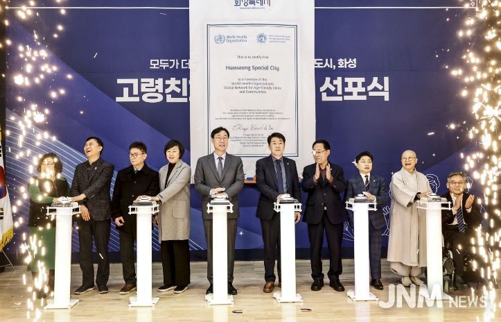 제이앤엠뉴스 | 화성특례시는 11일 세계보건기구(WHO) 고령친화도시 국제 네트워크(GNAFCC) 인증 획득을 기념하는 '화성특례시 WHO 고령친화도시 인증 선포식'을 개최했다.