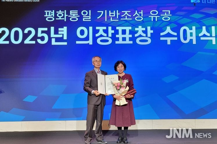 제이앤엠뉴스 | 민주평화통일자문회의 예천군협의회(회장 조경섭) 김재숙 자문위원은 11일 안동 스탠포드호텔에서 개최된 ‘2025년 민주평화통일자문회의 의장 표창 수여식’에서 의장(대통령) 표창을 수상했다.