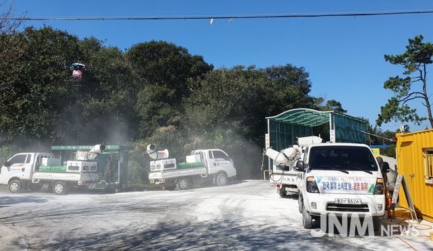 사체 처리는 침출수 유출과 토양 오염을 최소화하기 위해 FRP 통을 활용해 안전하게 마무리했으며 발생지 주변에는 소독 차량 7대를 투입해 집중 소독을 실시하고 있다.
