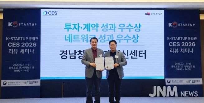 제이앤엠뉴스 | 경상남도는 CES 2026에 참가한 경남창조경제혁신센터가 중소벤처기업부와 창업진흥원에서 주관하는 ‘K-스타트업 통합관’에서 운영 성과를 인정받아 ‘우수 참여기관’으로 선정됐다고 밝혔다.
