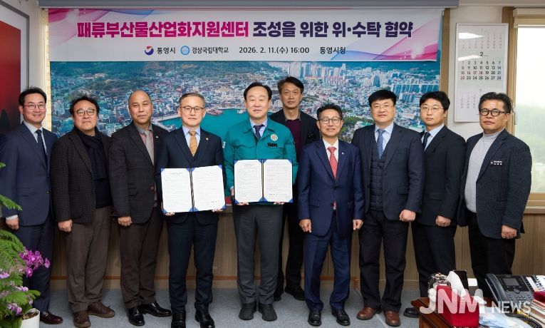 제이앤엠뉴스 | 경상국립대학교(GNU·총장 권진회)와 통영시(시장 천영기)는 2월 11일 오후 통영시 시장실에서 굴·가리비·전복 등 패류부산물을 체계적으로 처리하고 이를 고부가가치 상품으로 개발하기 위해 ‘패류부산물 산업화 지원센터’ 조성 업무협약을 체결했다.