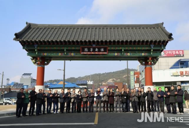 군은 지난 12일 동문리 일원에서 가세로 군수를 비롯한 군의원, 지역주민 등 200여 명과 함께 경이정로 도로 개설과 일주문의 준공을 기념하며 현판식을 개최했다.