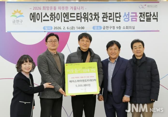지난 6일에는 에이스하이엔드타워3차 지식산업센터 관리단(회장 김영남)이 관내 취약계층을 위해 성금 500만 원을 기부했다. 성금 전달식에는 김영남 에이스하이엔드타워3차 지식산업센터 관리단 회장, 임원 등 7여 명이 참석했다.
