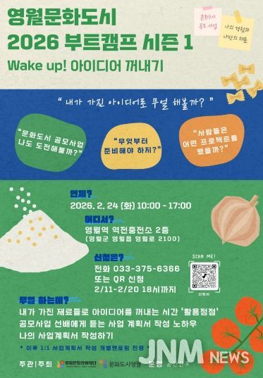 제이앤엠뉴스 | (재)영월문화관광재단 문화도시센터는 오는 2월 24일 영월역 문화충전소에서 지역민의 창의적인 로컬 아이디어를 발굴하고 실질적인 사업계획서로 발전시키기 위한 ‘영월 로컬 아이디어 구체화 부트캠프 시즌 1’을 개최한다.