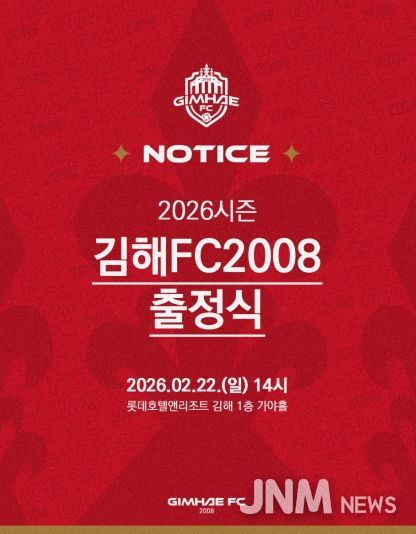 제이앤엠뉴스 | K리그2 무대에 첫 도전장을 내미는 김해FC2008(이하 김해FC)이 오는 22일 오후 2시, 롯데호텔앤리조트 김해에서 ‘2026시즌 출정식’을 개최한다.