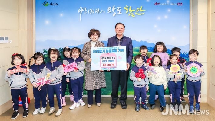 제이앤엠뉴스 | 함안군은 새싹아트어린이집(원장 임혜영)에서 최근 원아들이 참여한 아나바다(아껴 쓰고·나눠 쓰고·바꿔 쓰고·다시 쓰기) 행사로 마련된 수익금을 지역 내 어려운 이웃을 위해 기탁하며 따뜻한 나눔을 실천했다고 지난 12일 밝혔다.