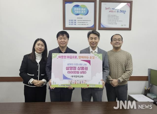 제이앤엠뉴스 | 의왕시 부곡동 부곡감리교회가 2월 12일 설 명절을 맞아 지역 내 어려운 이웃을 돕기 위해 500만원 상당의 상품권을 후원하며 지역사회를 위한 따뜻한 나눔을 실천했다.