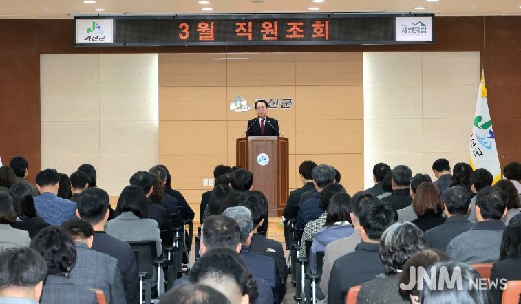 제이앤엠뉴스 | 충북 괴산군이 민생안정지원금 신청률 98.4%를 기록한 가운데, 군은 3일 군청 대회의실에서 3월 직원조회를 열어 직원들의 노고를 치하했다.