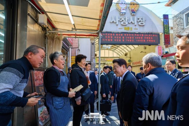 제이앤엠뉴스 | 이재명 대통령이 13일 오후 충북 청주 사창시장을 찾아 지역 상인과 주민들과 직접 만남을 가졌다.