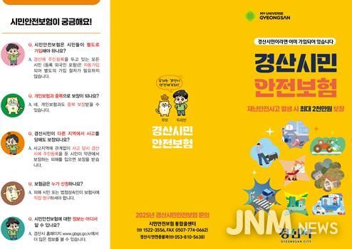 제이앤엠뉴스 | 경산시는 시민의 생명과 안전을 지키기 위한 ‘시민안전보험’의 보장항목을 2025년 6월 1일부터 대폭 확대해 시행한다.