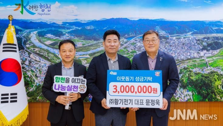 제이앤엠뉴스 | 합천군은 16일 합천읍에 소재한 ㈜황기전기 문정욱 대표가 올해 2월 이웃돕기 성금 500만 원을 기탁한 데 이어, 추가로 300만 원을 기탁했다고 밝혔다.