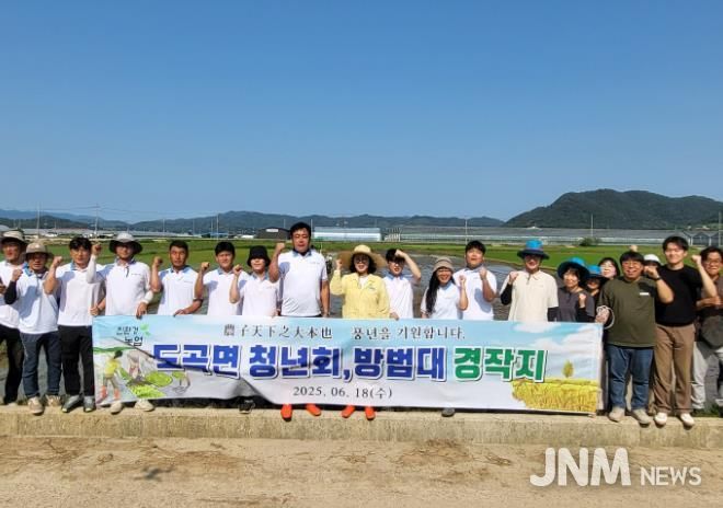 제이앤엠뉴스 | 화순군 도곡면은 지난 18일 도곡면 청년회와 방범대가 효산리 1278-5번지 경작지에서 올해 농사 풍년을 기원하는 합동 모내기 활동을 했다고 밝혔다.