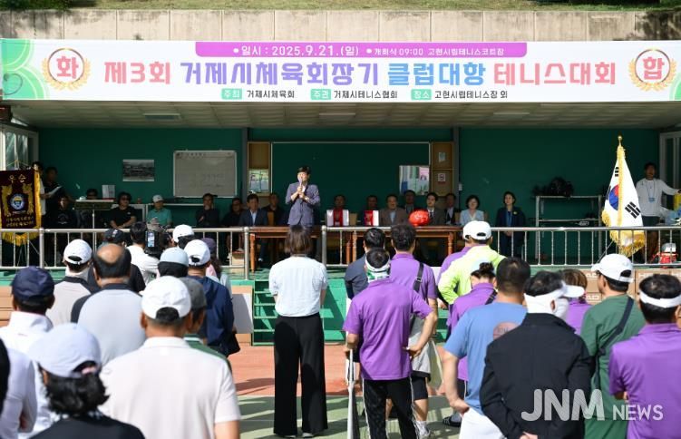 제이앤엠뉴스 | 거제시체육회가 주최하고 거제시테니스협회가 주관한 제3회 거제시체육회장기 클럽대항 테니스대회가 지난 21일 시립테니스장을 비롯한 관내 3개 구장에서 뜨거운 열기 속에 진행됐다.