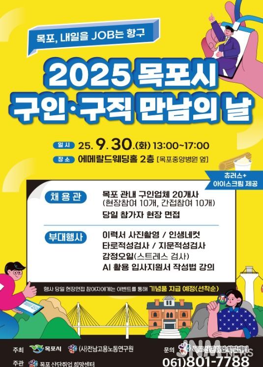 이번 행사는 목포시가 주최하고 (사)전남고용노동연구원이 주관하며, 지역 구인기업 20개사가 참여해 기업 설명회와 현장 면접을 진행한다.