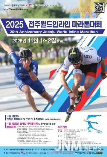 전주시는 ‘2025 전주월드인라인마라톤대회’가 오는 11월 1일부터 2일까지 옛 전주종합경기장에서 전주월드컵경기장까지 이어지는 코스 등 전주시 일원에서 펼쳐진다고 26일 밝혔다.