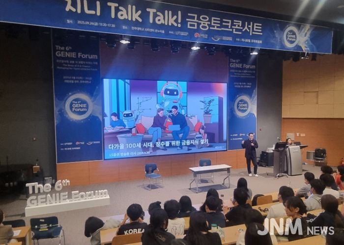 제이앤엠뉴스 | 전북특별자치도가 26일 전주대학교에서 제6회 지니포럼(GENIE Forum) 연계행사로 '전북 금융산업발전 세미나'와 도민 대상 금융토크콘서트 '지니톡톡(TalkTalk)'을 개최했다.