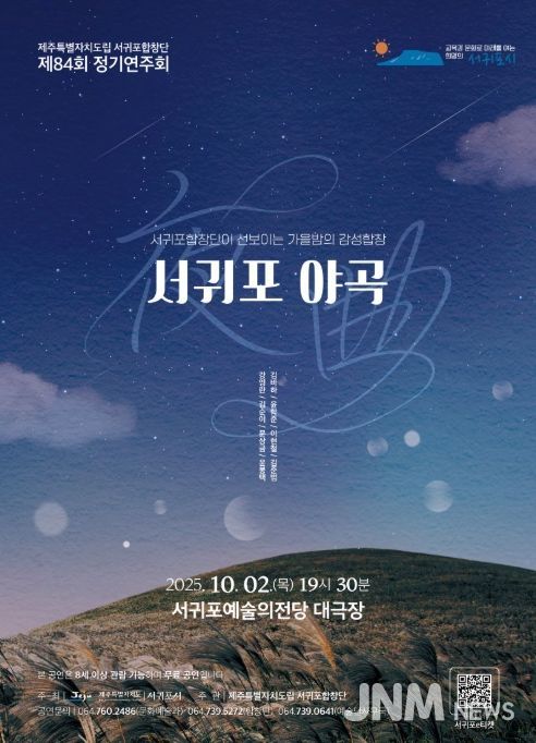 제이앤엠뉴스 | 서귀포시는 오는 10월 2일 서귀포예술의전당 대극장에서 서귀포합창단의 제84회 정기연주회 '서귀포 야곡(夜曲)'을 개최한다.